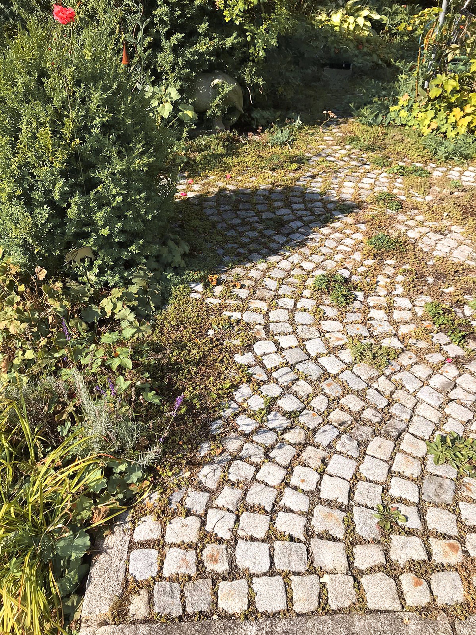 Wir befreien sie vom Unkraut, Moos, Algen, Schimmel und verfugen mit 2 Komponentigen Epoxidharz Pflasterfugenmortel.